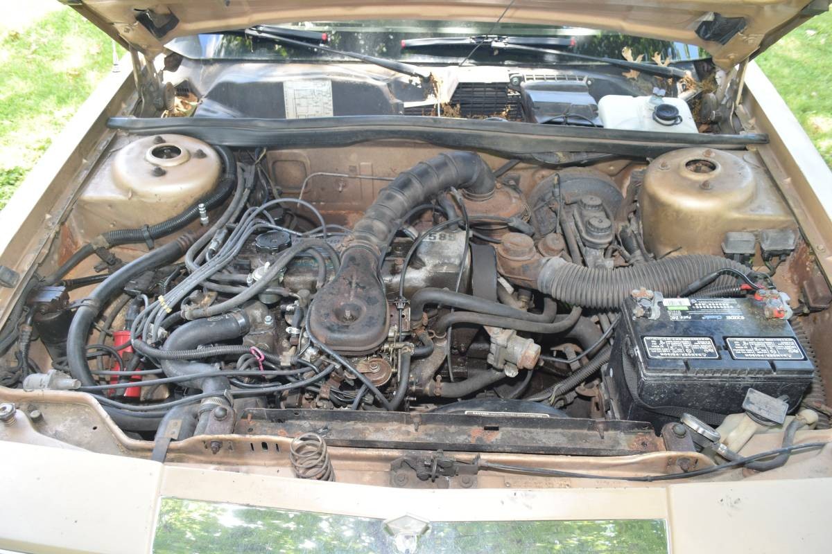 The seller says the car is “running and driving now” and offers potential buyers to “come take it for a spin.” Pictures show a decently clean engine bay and everything looks to be intact. It comes with a 2.6 liter, 4 cylinder Mitsubishi motor that could hit 60 mph in a blink under 12 seconds. Chrysler offered a turbocharged version for the LeBaron as well or, like a high school buddy of mine did with his K-Car, you could just put a fake plastic switch on the dash that says “Warp Speed.” K-Cars weren’t known for proficient handling, and those of us having had the opportunity to drive one can attest to the fact that they steered like a flat bottom skiff with one oar. The column-shift on the automatic provided some trepidation when putting the car in gear. I remember having to be alert and keeping my foot firmly on the brake pedal because after what seemed like a 2 second delay, the little beast would give a giant lurch forward much like my lawn tractor does when I press down too hard on the hydrostatic foot pedal.