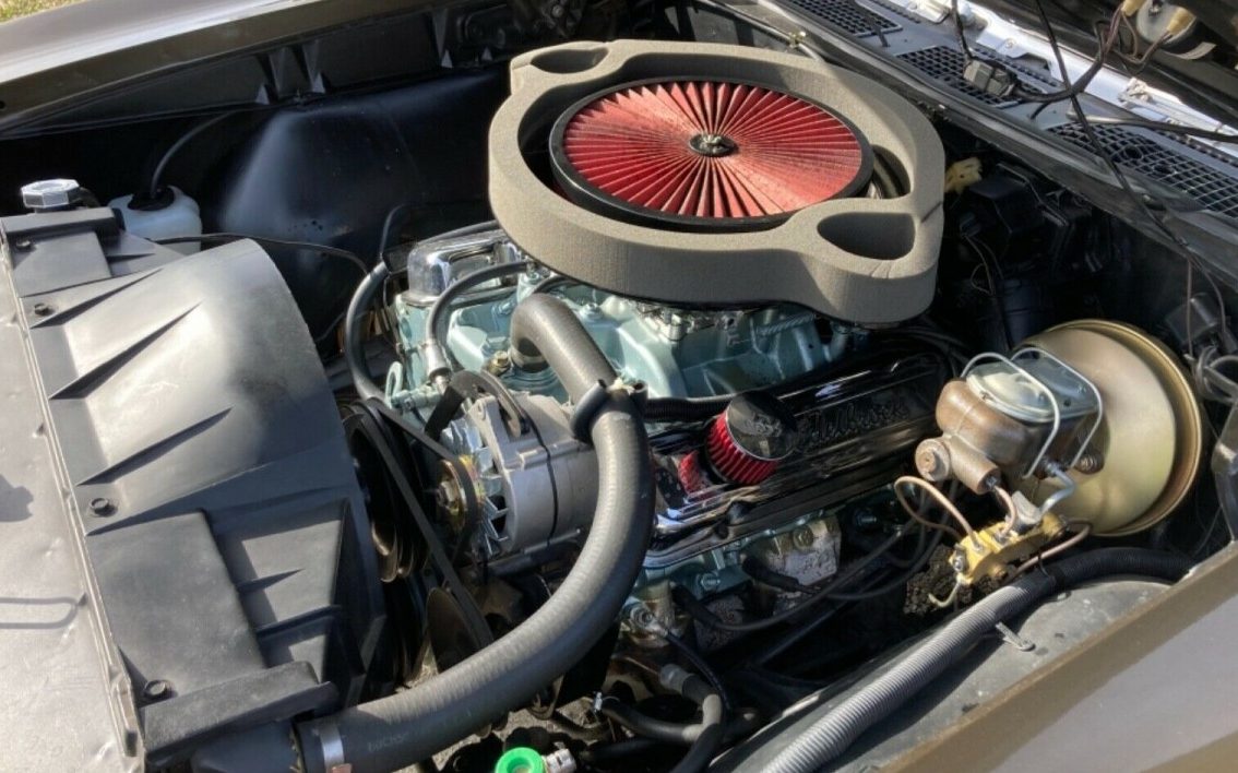 Like the rest of the car, the engine compartment is really clean. The unmistakable light blue Pontiac block is nestled in place and looks good. The seller says the 400 cubic inch V8 was “overhauled” in 2009. It is mated to a turbo 400 transmission and exhaust gasses exit through Flowmaster mufflers.