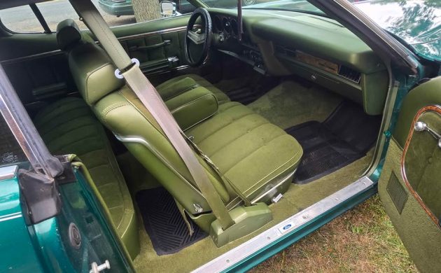 Standard fare in 1976 was a 351 cubic inch V8, and apparently both “Windsor” and “Cleveland” variants were in the mix. Only an automatic transmission was available, and power goodies prevailed (such as brakes and steering). If the 351 wasn’t beefy enough, you could opt for a 400 or a 460 V8, but in their detuned form, they were mostly good for slurping gasoline. The seller’s car has the 351 but with big wheels and tires in the back, so has anything been done to it otherwise to make it more potent?