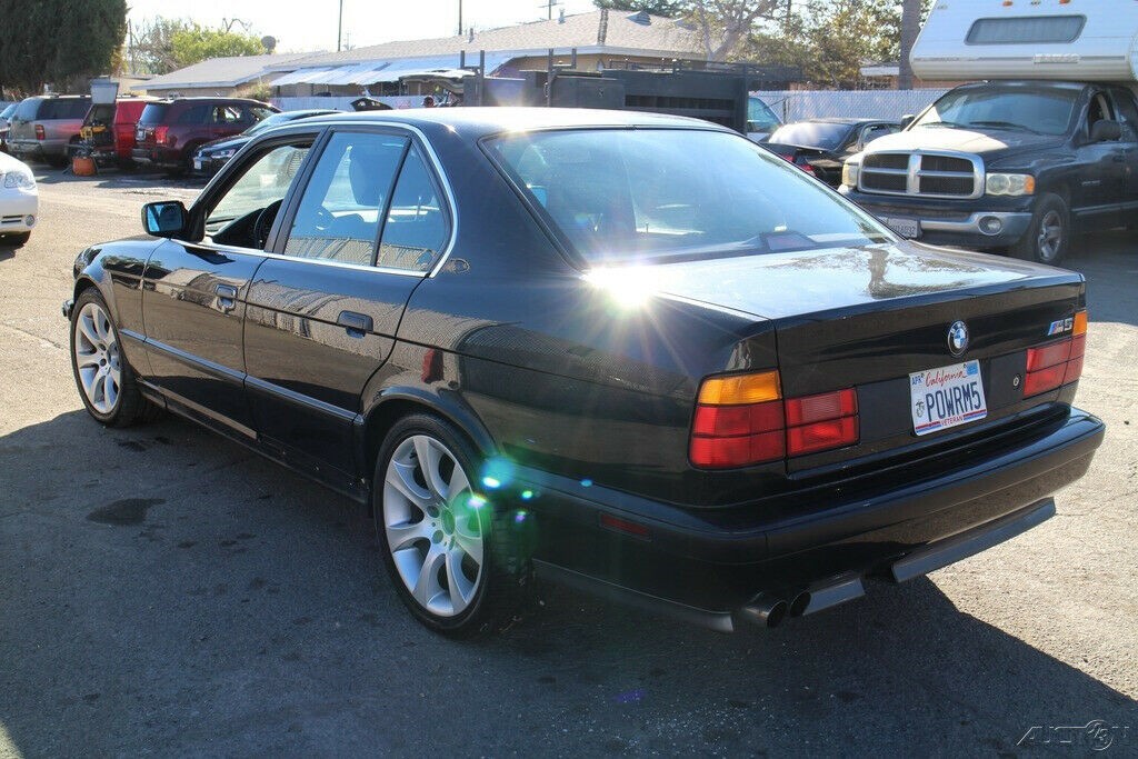 Right off the bat, you can tell the paint is in good shape. Black isn’t very forgiving, so I suspect it’d look far rougher in photos if the finish was trashed. Plus, given this is California, a car sitting outside in the blazing sun for months at a time would likely have clearcoat failure or other tell-tale signs of neglect; not here. The M5-specific bodykit is accounted for, as are the factory badges, and even the license plate tells you this car belonged to an enthusiast. The only obvious detraction from stock are the non-standard wheels, which is shame because the M5 either came with a set of very sweet turbine/”turbofan”-style wheels, or the later “Throwing Stars,” both of which fetch a pretty penny on the used parts market.