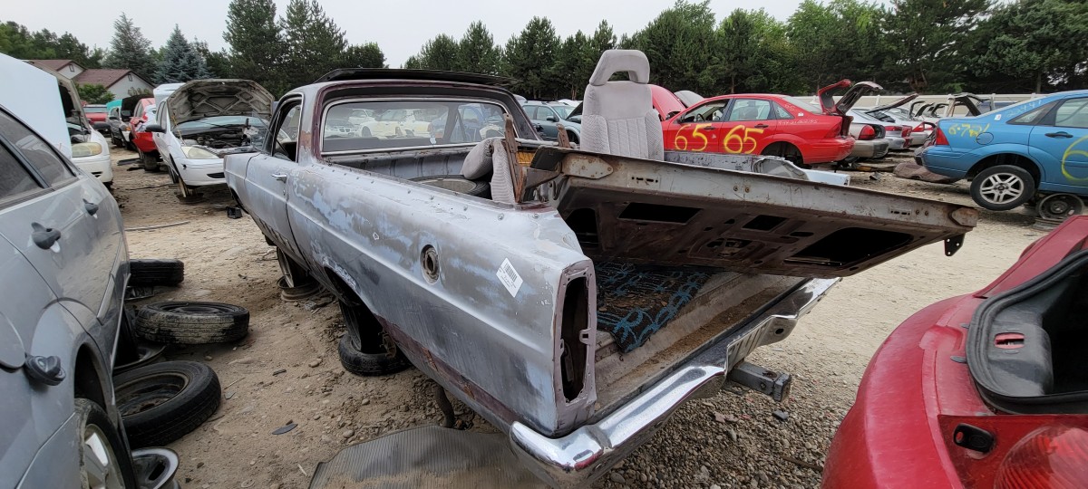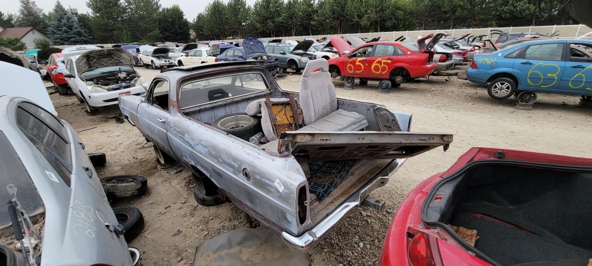 The first one I spotted was this 1967 Ford Ranchero. Clearly, it’s been in the yard long enough for people to strip a number of components from it. While I didn’t see much left that’s worth saving, I did notice a parking ticket sticker in a pile of glass on the floor that was dated for March of this year and the street it was parked on. It was from Garden City, one of the suburbs of Boise and was just down the road from this particular junkyard. I didn’t think to much of it, other than it was sad that it ended up being scrapped over a parking violation, but it would soon become an interesting part of this story as I spotted other cars here and at a neighboring junkyard with similar stickers.