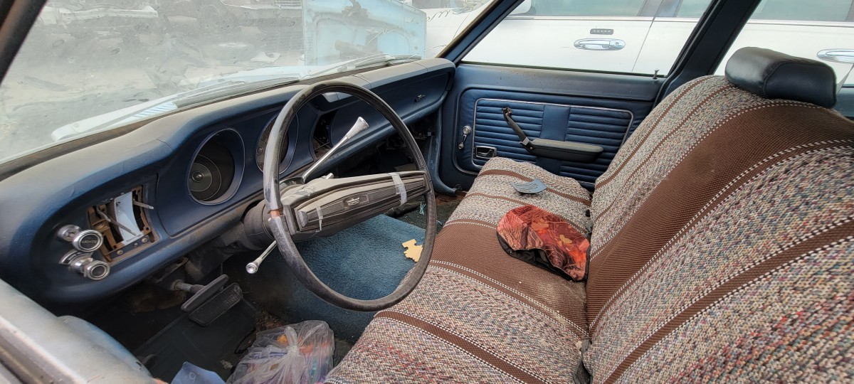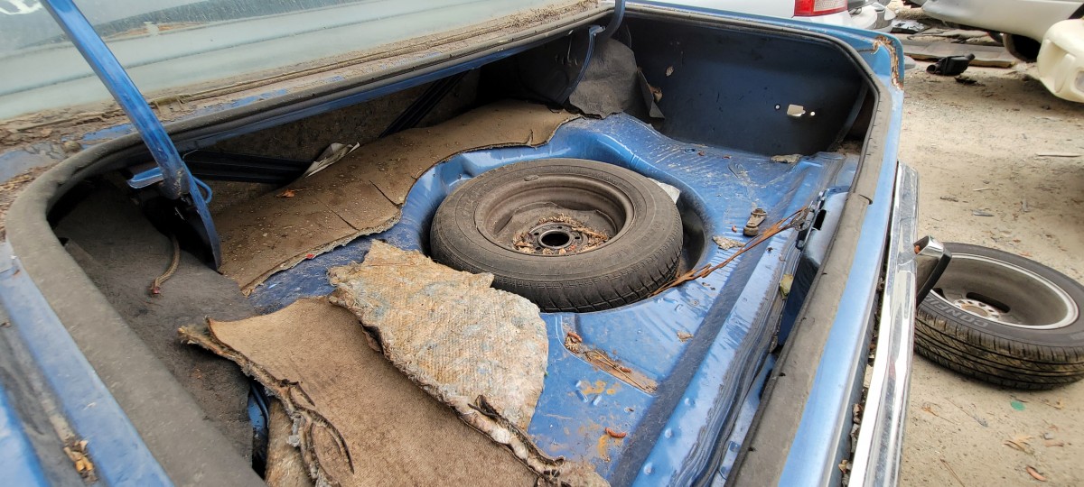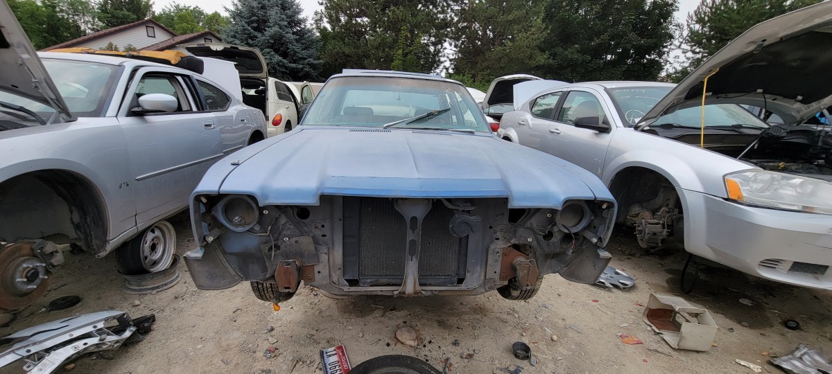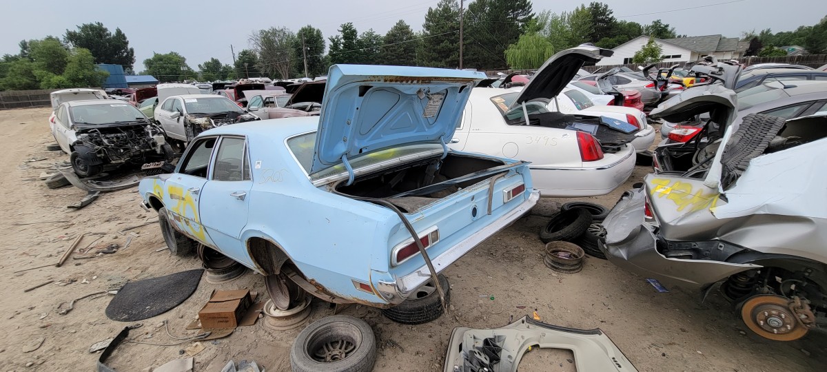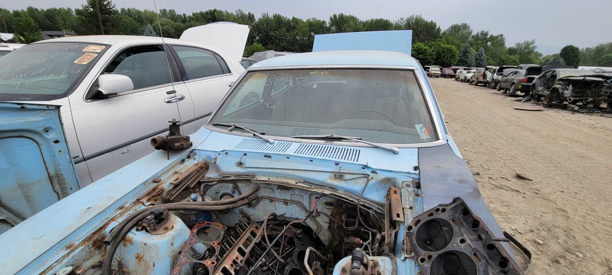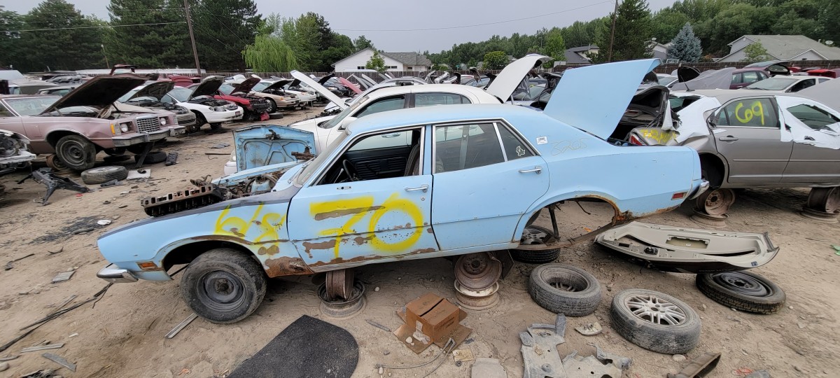 One I was finished looking the Buick over, I jumped in my car and drove to the other pick and pull in hopes of finding a good radiator for Jesse’s Volvo. I didn’t have any luck on that front, but I did find several more classics that appear to have come from the same property as the ones I had just looked at. I managed to snap photos of this 1973 Ford Maverick before my phone battery went dead. Looking it over, I was amazed by just how many styling cues were borrowed from the Mustang! It’s hard to see in photos, but it’s more noticeable in person. Obviously, it’s no 4-door Pony car, but I sure like the looks of it compared to Ford’s latest abomination to wear the iconic Mustang name (the Mustang Mach-E if you are wondering). It seems like to me, the Maverick name would have been more fitting for their new electric Tesla fighter, but that’s just me.
