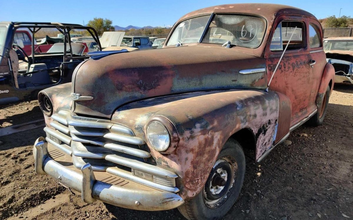 There are a wide variety of vehicles in this junkyard. Everything from the 20s to the 90s and everything in between. How about a nice 40s Chevrolet sedan? Lot 67 appears to have most of its trim and chrome intact, which is amazing.