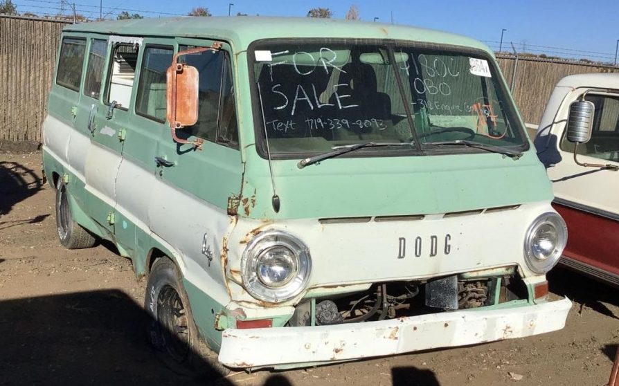 This retro-cool Dodge Van is lot 117 and it has a title. You can see on the windshield, they were hoping to get $1,800 or best offer. The van features a 318 engine and besides a little roughness around the passenger front headlight, it looks like a nice old van.