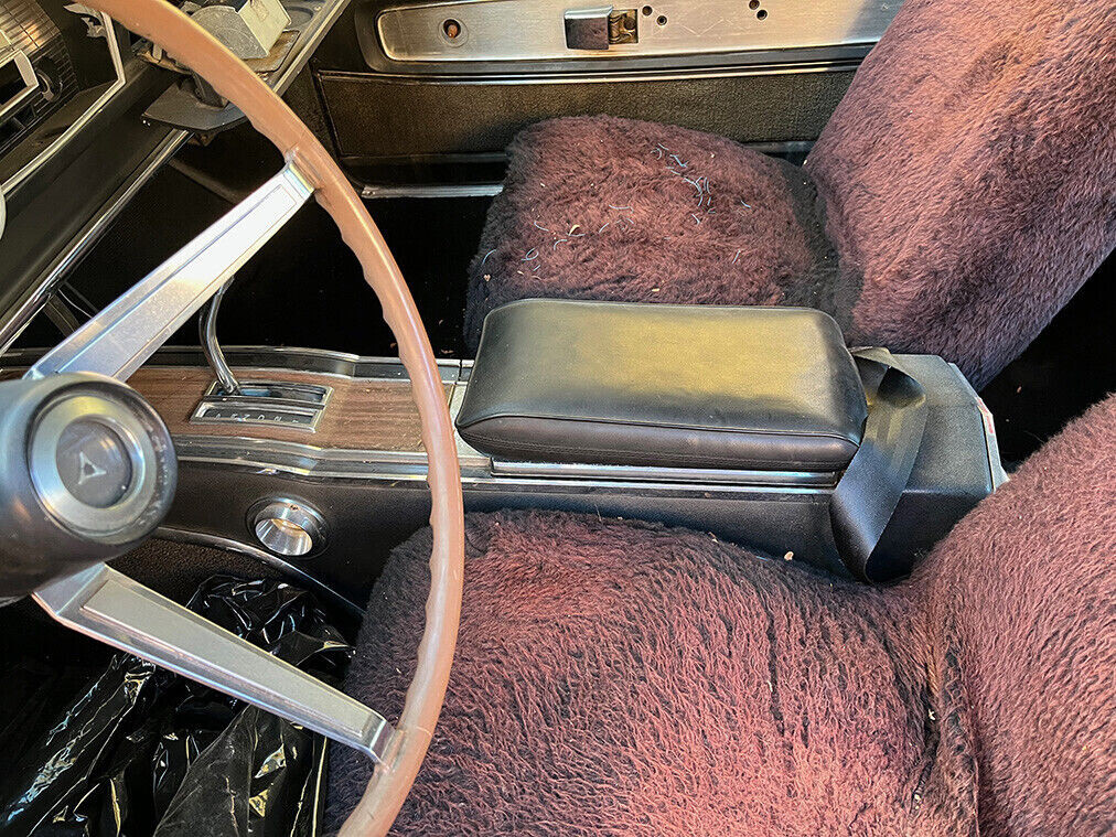 The fender script says this car left the factory with a 383 cubic inch V8 and the seller says a good-running one is there now, but is it original? It has a 4-barrel carburetor which could have been rated at 330 hp when new. While it’s said to run, we don’t know that the car stops as the brake pedal looks awfully close to the floorboard, under the dash where wires are hanging down. Rust is not mentioned, but there’s a big crease in the passenger side quarter panel. This looks like a challenging project, where getting a VIN and a title might be the most difficult.