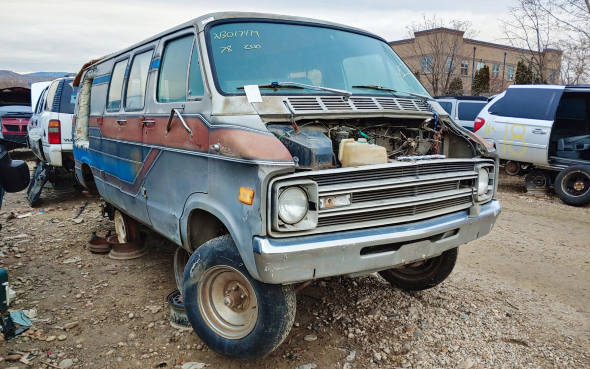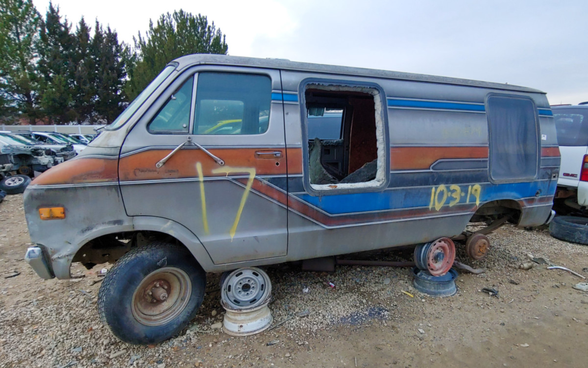 I wouldn’t be surprised if this van ended up here simply because no one wanted to clean the interior out, I know I wouldn’t want to clean out all that shag carpet and whatever is living in it. But it’s really a shame that it ended up in the scrapyard, I’m sure someone out there would have loved to bring it back to its former glory. So, do you think this one should have been saved or is the junkyard the right place for it to be?