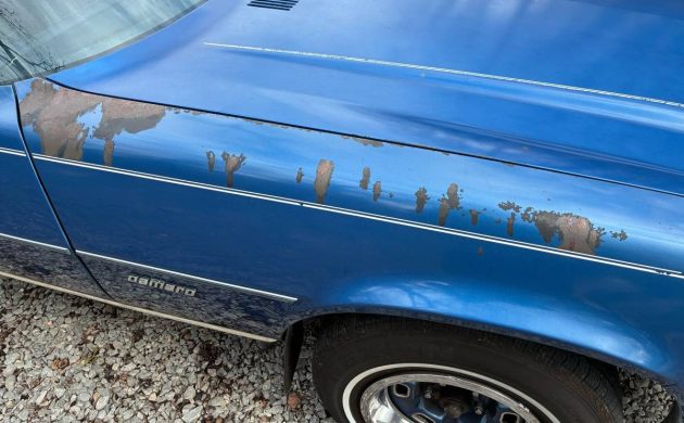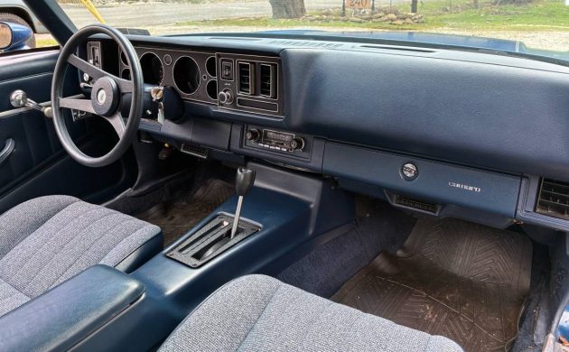 A 267 cubic inch V6 was standard fare in the Camaro. With just 115 hp, we assume the car was anemic in the performance department with an automatic transmission. The seller’s Chevy has recently had the odometer turn over (remember those days?), so it reads 102,500 now. We’re told the car has been garage-kept and is original, which we assume includes the blue paint, which is past its prime. On the other hand, the interior looks almost spotless, especially for 45 years.