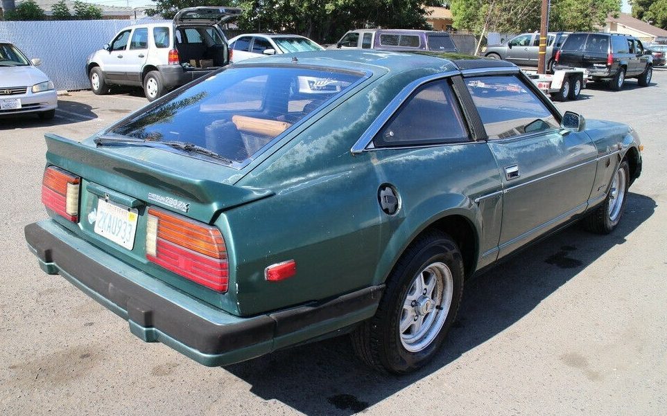 The Datsun features what looks like a period aftermarket rear spoiler, though there’s a chance it was an OEM option given how well it fits the car’s lines. It seems like there’s a chance of a respray in the car’s past, as the paint is flaking off in chunks on the front passenger fender, and the driver’s side appears to show blue paint underneath the forest green finish. While it was likely a cheap car at the point in which it was resprayed, most quicky paint jobs would have simply painted over the black trim in the rear bumper – so there’s a chance it looked pretty good when the color change too place. The 280ZX retains its original Datsun-stamped wheels and factory badges, another feature that usually gets lost on cheap resprays.