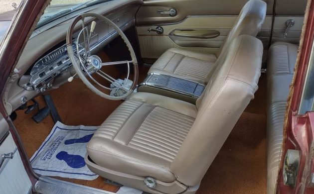 One of the things that I like about the early Comets is the tail; the 1962 models were toned down from the “cat’s eye” taillight motif of earlier cars, but it was still a little weird (in a good way). You’ll notice a little rust forming on the rear bumper, which tells us that this Comet is no show winner. The seller does mention that it just came up to Ohio from Tennessee last year, and that it runs and drives. It’s also “very clean underneath,” although there aren’t any pictures of that, nor are there pictures of the engine compartment. The Comet does apparently have the optional 101-horsepower 170 with a newer carburetor and a two-speed “Merc-O-Matic.”