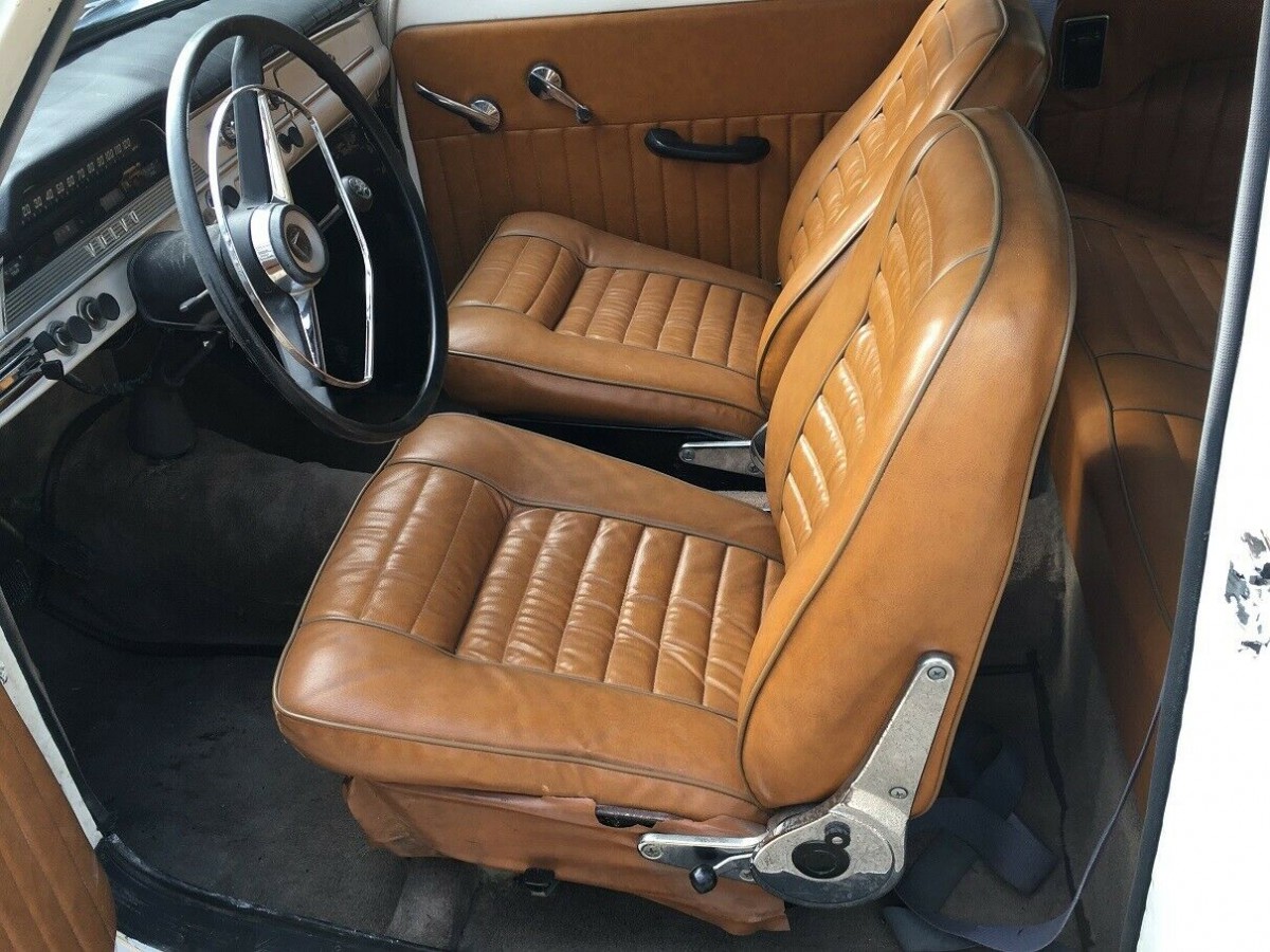 Other than a little loose vinyl covering part of the seat base, everything else we see backs up the sellers claim that the interior is in very good shape. The glossy vinyl “Naugahyde” look of the material looks a little out of place. However, it is still cool in a vintage way. You also can’t fault the material after all these year of use. It obviously held up well.