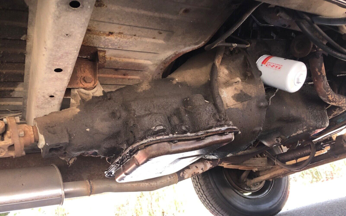The cab isn’t actually all that nice, pretty cruddy around the instrument cluster, and the carpet looks shot, nice in the Camper part though. Silicone is a no no in auto transmissions, looks like somebody used a whole tube on that pan