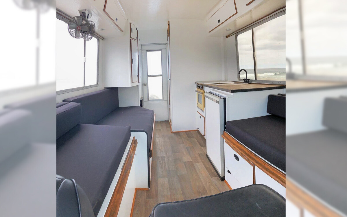 I had the “modern” one of these (1998) for a couple of years. Great floor plan and setup and the Dodge 360 had plenty of pep, but gave me the willys driving it, was so top heavy and swayed and wallowed all over the place. It handled so poorly that traveling in it wasn’t fun. Ended up selling it, evidently the buyer wasn’t as lily livered as I was. Perhaps doolies would have helped but no room in the fender wells.