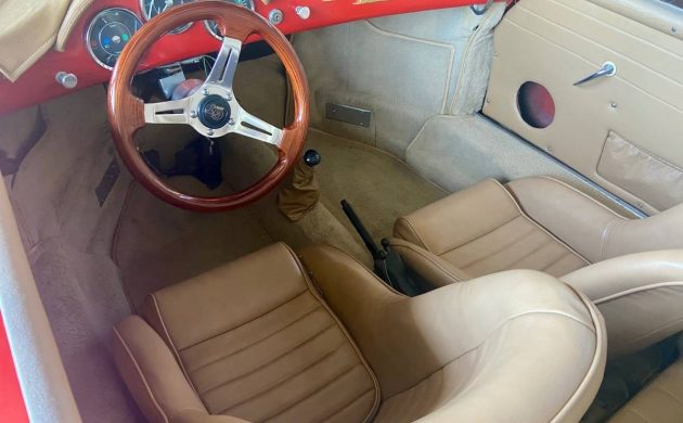 The interior is another opportunity to make a clone car into a genuinely special vehicle. One of the bigger failures of some kit car builders is to cheap out on the cockpit, leaving onlookers with the impression that someone built this car in their garage when time and money allowed. Putting an actual finished cockpit inside with carpeting, leather bucket seats, and a real painted dashboard completely change the impression of a kit car. The seller doesn’t disclose who the manufacturer of this Speedster replica is, but it appears to be a fairly high-end package, that just needs some finish work to be ready for the road (the missing speakers in the door panels and the headlight covers on the nose are some of the details I noticed.)