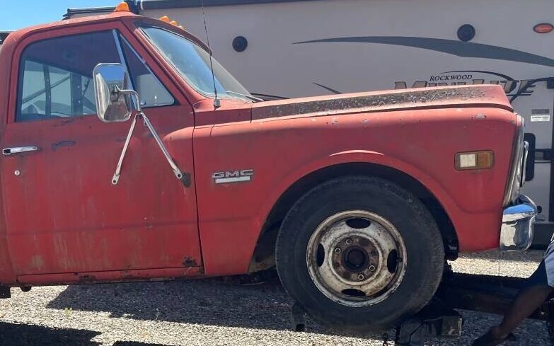 The seller adds, “The truck has a small block Chevy engine, brand new aluminum radiator with electric fans…” and then doesn’t bother to include an image – a real faux pas! My guess is that it’s a 250-gross HP 350 CI V8 assuming that it’s the original engine but that’s not known with certainty. A manual transmission is in place and it’s likely a four-speed known as an SM-465. It is claimed that this GMC can probably be driven onto a trailer (there’s that trailer to haul a trailer matter) for transport but actual self-movement has been limited to parking lot maneuvers. The seller also states, “I do not remember what the odometer reads“. Hmm, how hard would it be to just glance at it and gives us a report – odd statement.