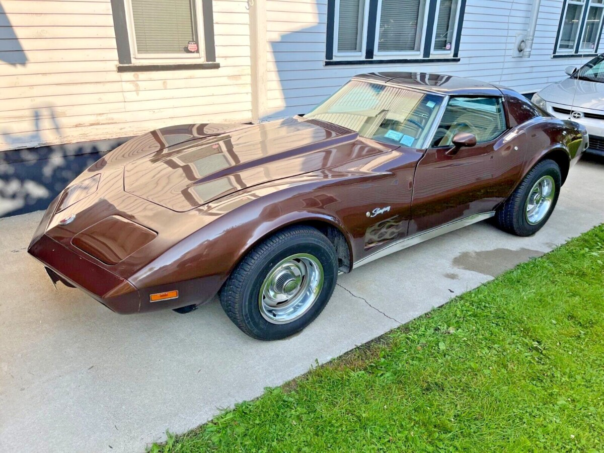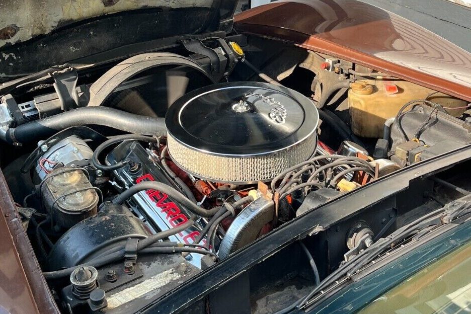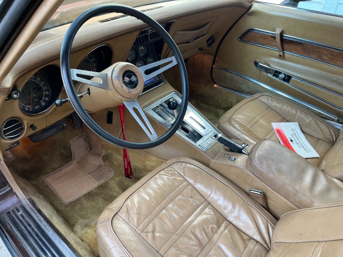 The 1974 model year marked the second of significant visual changes for the C3 Corvette. The chrome rear bumpers were now a distant memory, with the car’s back end sporting a tapered urethane unit with recessed taillights. This update, designed to meet legislative requirements, divides opinions. I have never been a fan of the frontal changes, but the rear is quite refreshing. The original owner ordered this classic in Dark Brown, and the car retains what appears to be its original paint. It has accumulated its share of scratches, chips, and other imperfections, and many would consider a repaint to bring out the best in this classic. The flames on the front fenders are an aftermarket addition, and the seller has never attempted to remove them as they are sealed under the clearcoat. Some may find their appearance attractive, but others may not be able to cover them fast enough. The seller indicates that the frame and birdcage are structurally sound, and the excellent roof panel seals have ensured no moisture has found its way inside this classic. The glass is in good order, and the Corvette rolls on Rally wheels wrapped in new Tornel tires.