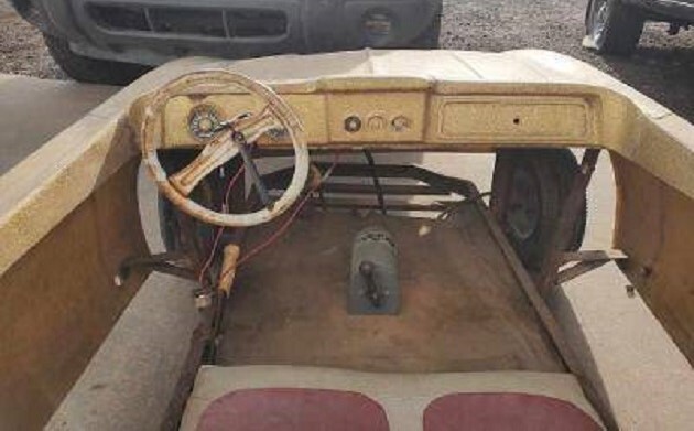 We’re told this little runabout has seating for two little people and is powered by an ordinary 12-volt car battery. There is a foot switch that is used to engage the battery, a drum switch to go into reverse, and a hand brake to stop the little replica. We assume the body is made of fiberglass. The seller does not mention if it’s in operational condition but does say it needs a restoration. Last minute Christmas gift for one in your brood?