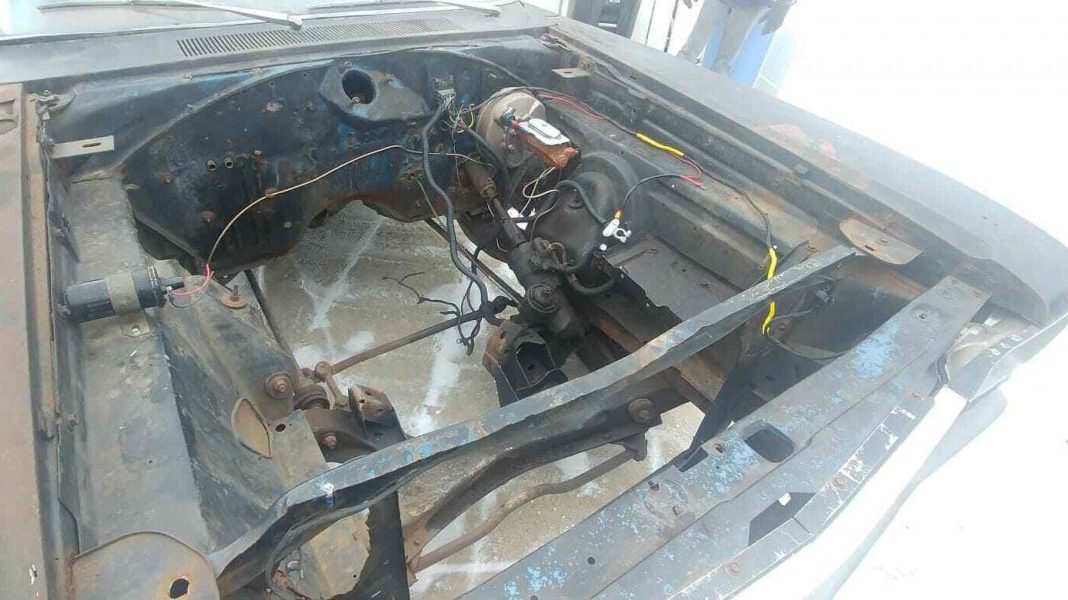 Another sad, empty hole where an amazing motor used to dwell (sigh). The A12 440 featured 10.25:1 compression, a “low-taper” camshaft, and many heavy-duty components. Power totaled 390 HP and a foundation-shifting 490 lb-ft of torque. In a final act of indignity, the engine appears to have bent the radiator support on its way out. Otherwise, for a Michigan car, this engine compartment looks rather sound. Power steering and power brakes were luxuries on these low-budget brawlers, and this one had both. Thanks to hemmings.com for some details.