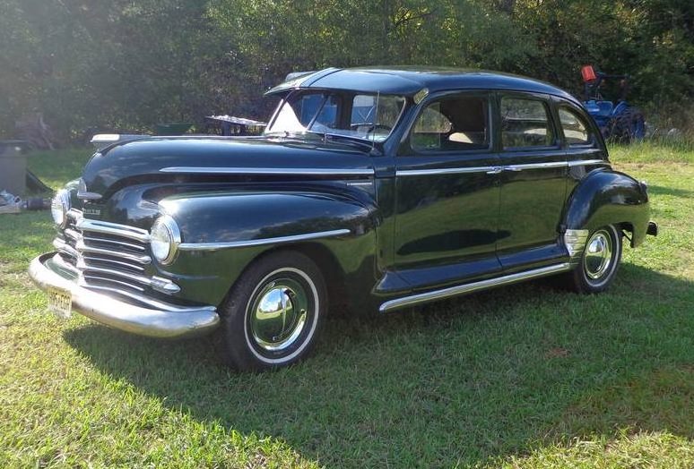I had a ’46 sedan almost like this one. I bought it from a guy over in El Paso, Illinois for the tidy sum of $50.00. Mine had the bumper guards