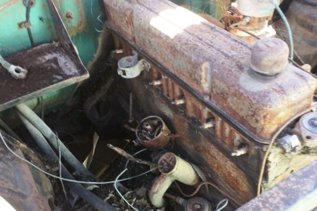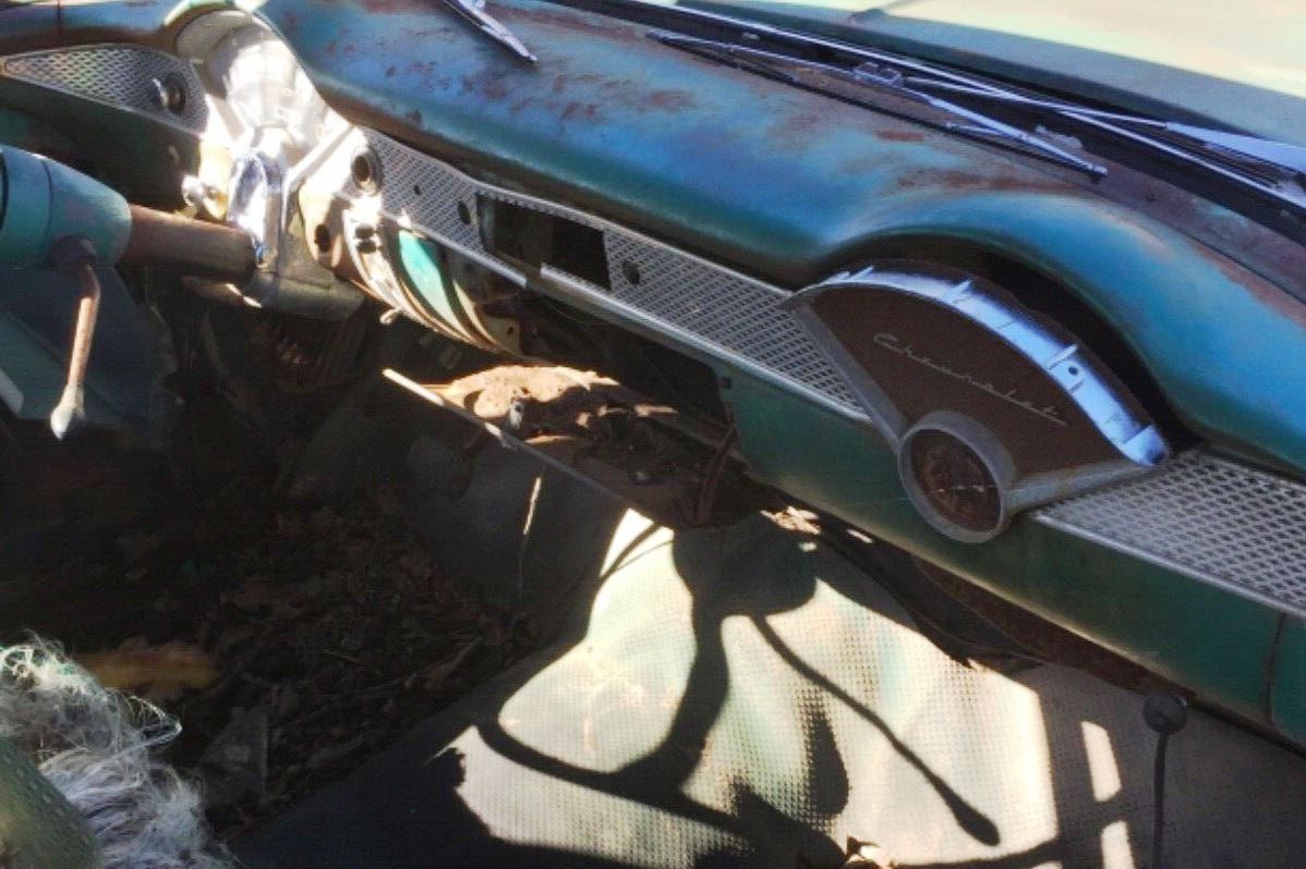 The dash may be useful, but a stereo installation and removal has left the shiny trim in a sorry state. Expect the worst under those floor mats. Only being reportedly stored “in a barn shed over 50 years,” may have saved it from utter destruction.