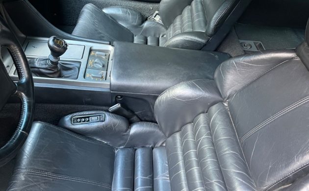 Inside, the black leather cockpit appears original, showing typical wear for the mileage. The radio issue is blamed on the common Bose system failure of the era, which many owners replace with modern units while keeping the original for originality’s sake.