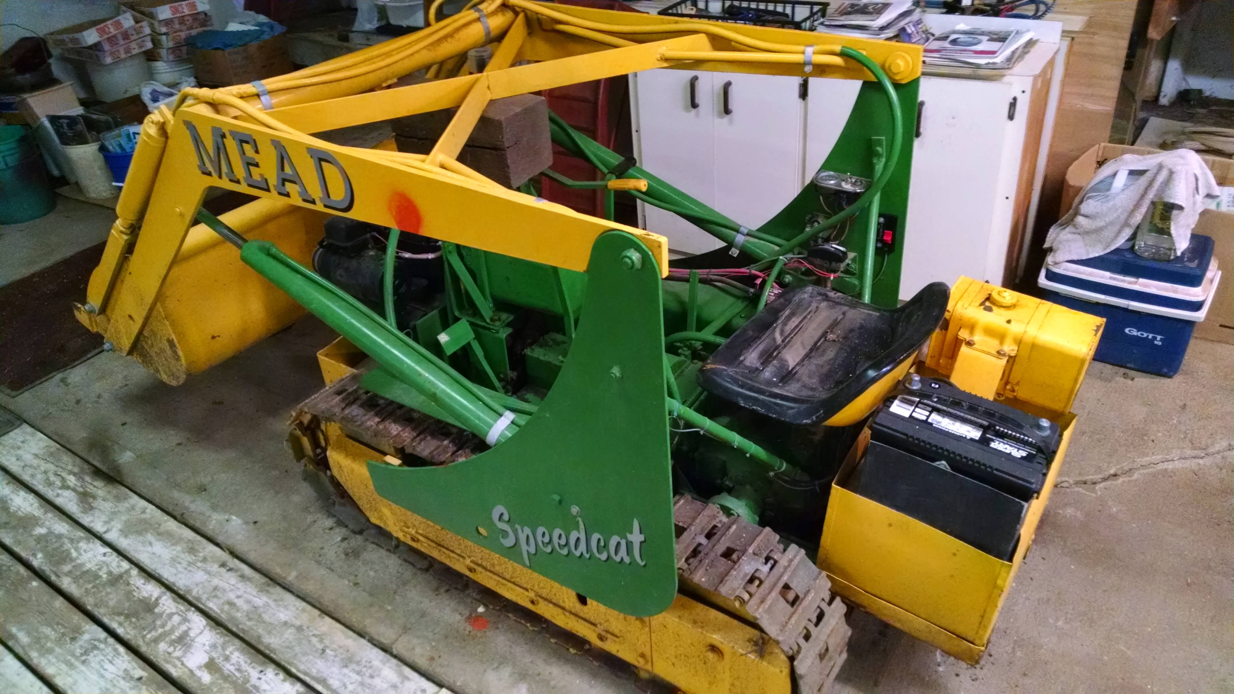I recently inherited this Mead Speedcat from an elderly neighbor who had become like a dad to me. He had it wrapped up in tarps for the 40 years I knew him – I kept bugging him to start it and play with it. Several years ago I got it running and put it in his barn where it sat until his death. Now I’ll have to take it out and play in the dirt in his memory!