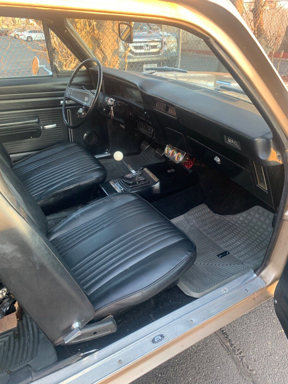 An L78 engine produced 375 hp from the factory. In 1968, Chevrolet only put 667 of them in a Nova. That grew to 5,262 the next year, and down to 3,765 in 1970, the final year it was offered in the compact (but as a 402?). As was the case of the Chevelle (after 1968), it’s hard to identify a Nova Super Sport without documentation like a window sticker or build sheet. The seller provides neither with this car and doesn’t indicate authenticity. The seller’s car is not original in at least two ways: the cowl tag specifies a different shade of gold paint, and the car came with a bench seat while buckets are present now.