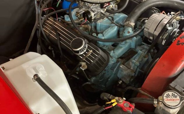 As can be seen in the pictures, the paint is dull in some places and shiny in others. The seller states that the wheels and tires were recently replaced. The blue marking is still present on aftermarket Cooper Cobra tires. The seller explains in the ad that the car drives great and it can be driven while the restoration is finished. Some rust repair is still need on the floor and fender. The trunk was repaired but it is said that it still needs more work. This could be a nice driver of a low production car.