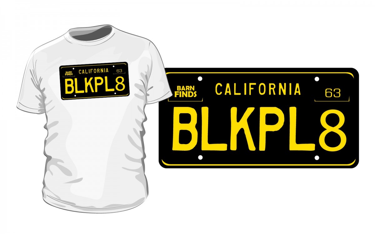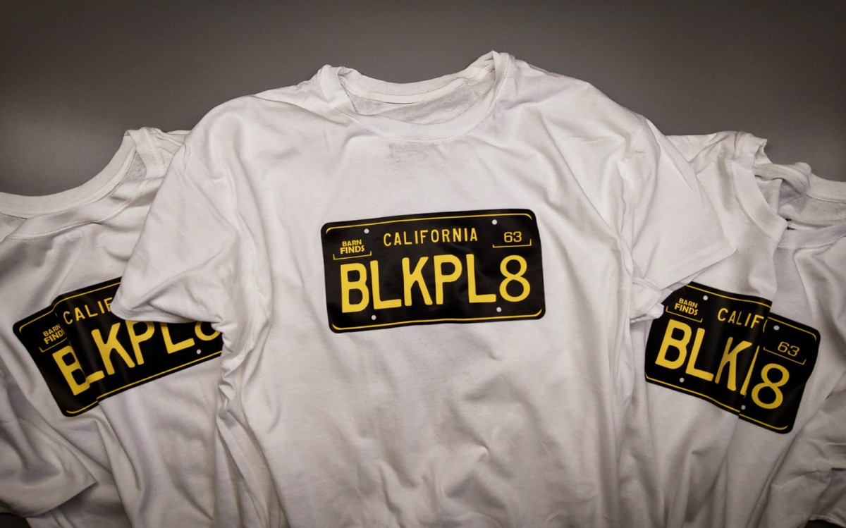 FROM 8/01/2019 – California black plates aren’t just for cars! Show the world that you’re a rust-free survivor. This is one of our favorite BF t-shirts and we’ve reworked the design a little and boy does it look great. So, if your old Barn Finds t-shirt is looking a little rough, be sure to order a new one today!