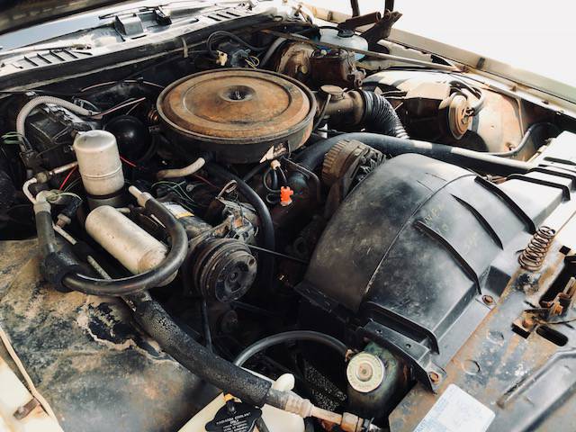 This engine is Pontiac’s 400 cubic-inch V8 which with the 4-barrel carb would have had 180 hp. 270,000 Grand Prix models were made in 1977 and this looks like one of the nicest ones left. Have any of you owned a third-generation Grand Prix?
