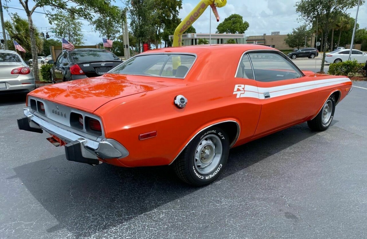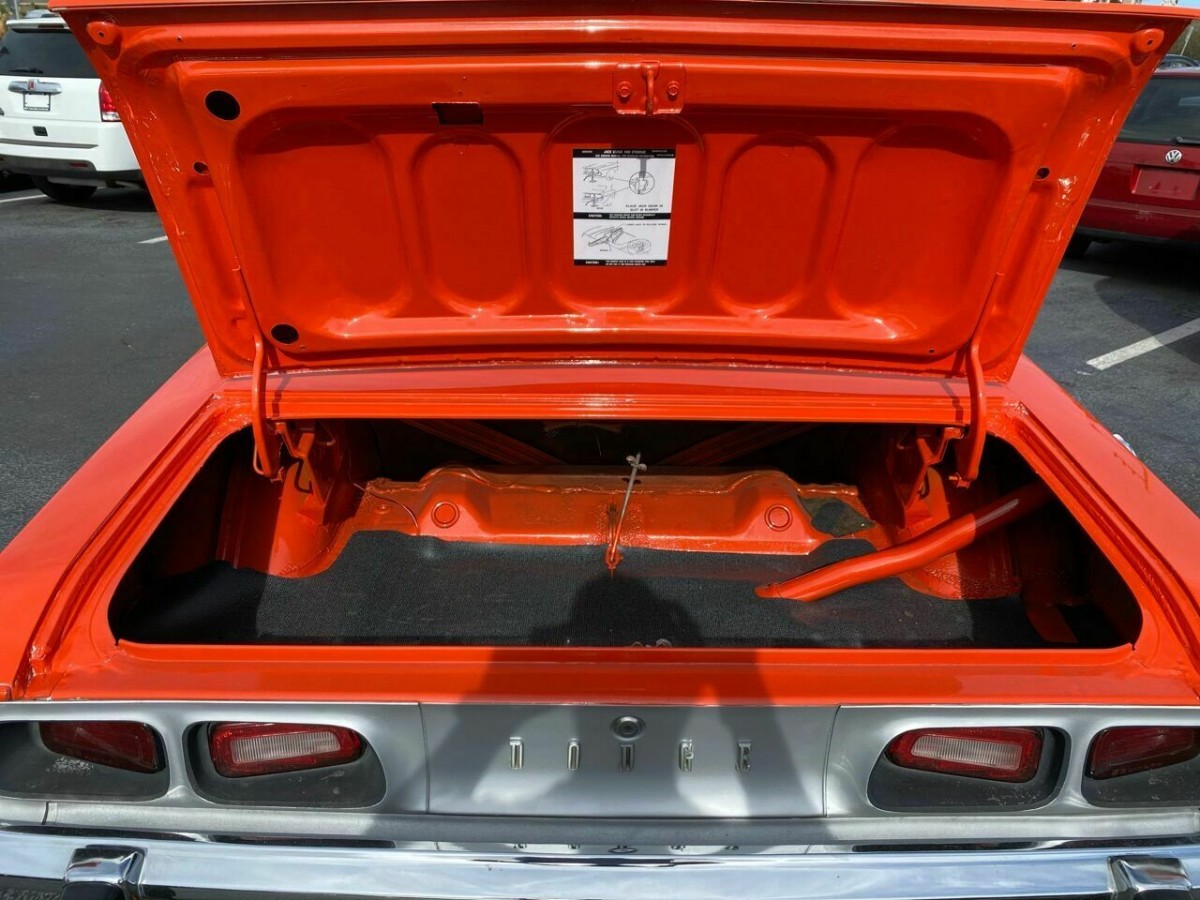 The seller says this Challenger has been stored most of its life, hence the claim of 53,800 miles. We’re told the Dodge has been repainted once in Hemi Orange, but I can find no records that this color was available after 1971, the last year of the Hemi engine (why continue to advertise the Hemi three years later?). While the paint looks genuinely nice, details might have been overlooked. For example, they repainted the entire master cylinder when they redid the engine compartment. The R/T stripes and emblems were added after the fact as there was no Challenger R/T after 1972.