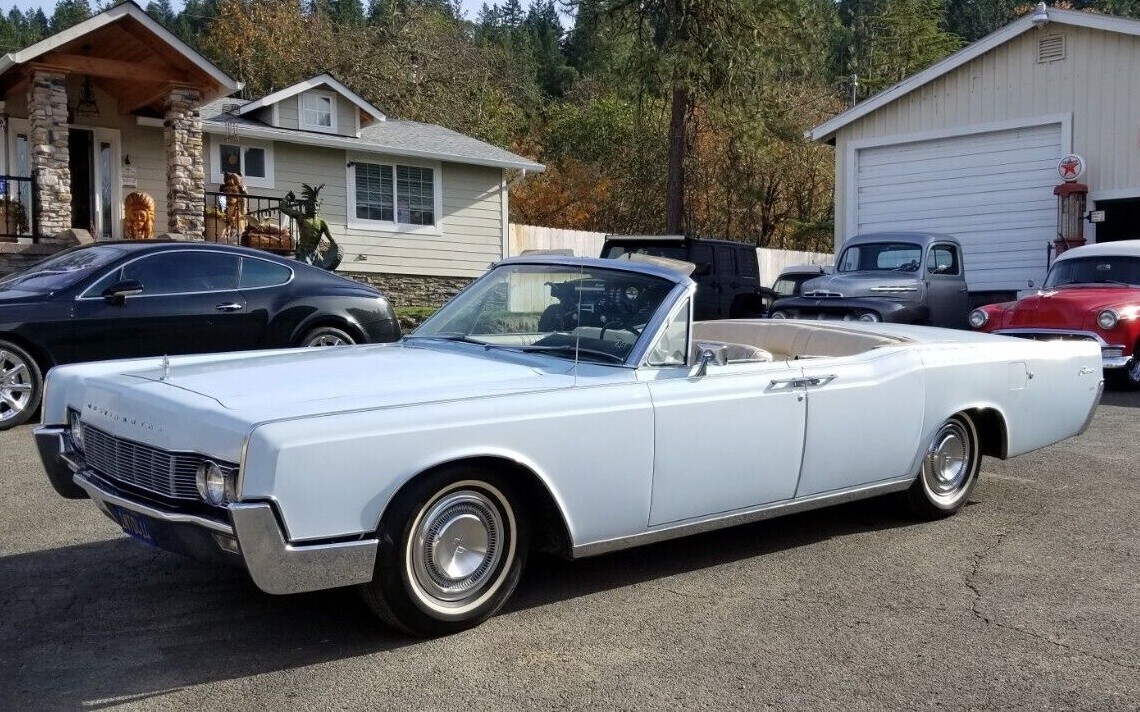 I owned a ’67 just like this one. It was originally gold but I had it repainted to a67 correct Wimbledon white. It had an ivy gold interior. It was fun to put the top down but you couldn’t do it under a lower-hanging branches tree because the top, at midpoint going down when it was straight up in the air, was about 12 feet tall! The trunk would open until it was vertical (opening from the front to back, not like a standard trunk). Then a flap under the trunk lid would move up,and finally the top would start to unlock and raise itself. It took about 3-4 minutes for the whole process to complete. Lincoln had foresight putting that key to open the top on the outside. That flap that unfolded was HEAVY and the motor, after a while, couldn’t raise it without an assist. So you couldn’t completely do it from the inside. I would stand by the side of the car, insert the key, let it get to where the flap was going to move up and by hand help the flap move up so the rest of the process could continue. But once the top was down, that car was flawless. The 460 drank premium like a drunken sailor, but it had plenty of power to move that boat around. I drove it from Ft. Lauderdale to Chicago and then on to Albuquerque. Was a great road car. The only problem we had was in Kansas where despite being the end of May, the temp was 105° out. So the car vapor looked. And we had the top down and when the car wasn’t running, you couldn’t put the top up because not enough hydraulic pressure. So we had to sit in the blazing sun until the engine cooled enough to start again. At the time it was highly annoying but in restrospect, that whole trip was quite an adventure. I used it in several parades after that until in 1999, I was diagnosed with a major illness and had to sell it. It killed me, but at least the guy I sold it to I knew was going to cherish it, and he did. He kept it for about 10 years and finally sold it to someone else. Regrets? Yeah, having to sell it. I’d still have it if I had been able to. Sorry for the long post but it’s about “Life with Lincoln”!