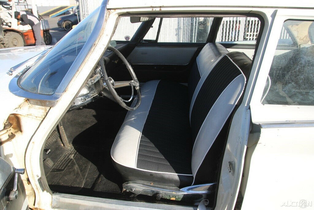 Not a lot is known about this land yacht from an era before the Beatles would become a household name. The base engine in the Newport was the 361 cubic inch V8 rated at 265 hp, one that we assume is under the hood of this charity case. The engine runs, but only with a lot of coaxing and when fed off an external gas can. The fuel pump needs to be replaced and the entire delivery system may need to be flushed out. The to-do list also includes the need for a new starter and the seller says the engine “needs work” but we don’t know if that goes beyond the ills already known. The car is equipped with Chrysler’s pushbutton automatic transmission.