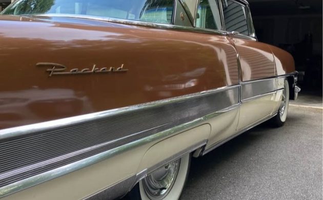 I believed in 1954, and I believe to this day, that Packard should have acquired the Briggs Coachworks responsible for assembling their bodies, before Chrysler did (and let Studebaker be): this would have prevented the South Bend last-minute quality-control issues in the early 1955s which proved fatal to the motto, “Ask the man who owns one”. Packard made another fatal mistake in making the Clipper so akin to a Packard in appearance, that Oldsmobile customers could own Packard prestige at a far lower cost than a senior Packard. The commonality was money-saving, but a terrible marketing move: the Clipper ought to have looked as much like a Packard, as a Buick resembled a Cadillac — same quality, but devoid of the “prestige” aspect. Packard was hit HARD by the recession of 1954, soldiering by with a three-year-old design (albeit quite advanced for 1951) which was quite unchanged and showing its age — in a time when Americans clearly wanted “the very latest of the latest”, not something brand-new which already looked “old” in style. Hudson Motors were even worse-off in that regard, with a six-year-old body at a time of rapid changes. What the senior Packards had for 1955 was about as perfectly elegant and worthy a restyle of their reliable old ’51, as probably was humanly possible — and one fabulous-looking luxury automobile! Those classic “cathedral” tail-lamps put Cadillac to shame and made the 1955 Cadillac look “common” by comparison. Only one serious problem: Cadillac had beat Packard to a new “crisp” look in 1954, replacing their dowdy 1953, and leaving Packard playing “catch-up”. That was fatal in the post-war “boom” years, and Packard could never catch Cadillac, despite Packard’s mechanical advances which no other car at that time yet had. I loved Packard. And I dearly miss Packard to this day. I prefer the 1955 to the 1956 “refresh” which degraded the look somewhat and made it more “trendy”, a thing Packard should have been distinctive enough to avoid. I’d love to own this beauty, except that I am too short from the waist to the shoulders to see out over the hood of any of the 1951-body Packards, without Webster’s Unabridged sitting under my hind end! Besides, the price here is too high for what these are now bringing and the work this one still needs. Too bad, too, because I could take care of that clock and that radio! And I would NOT ADD SEAT BELTS! But even if I could afford it, all bets would be off if the ash-tray and lighter had ever been used for smoking! (sorry)