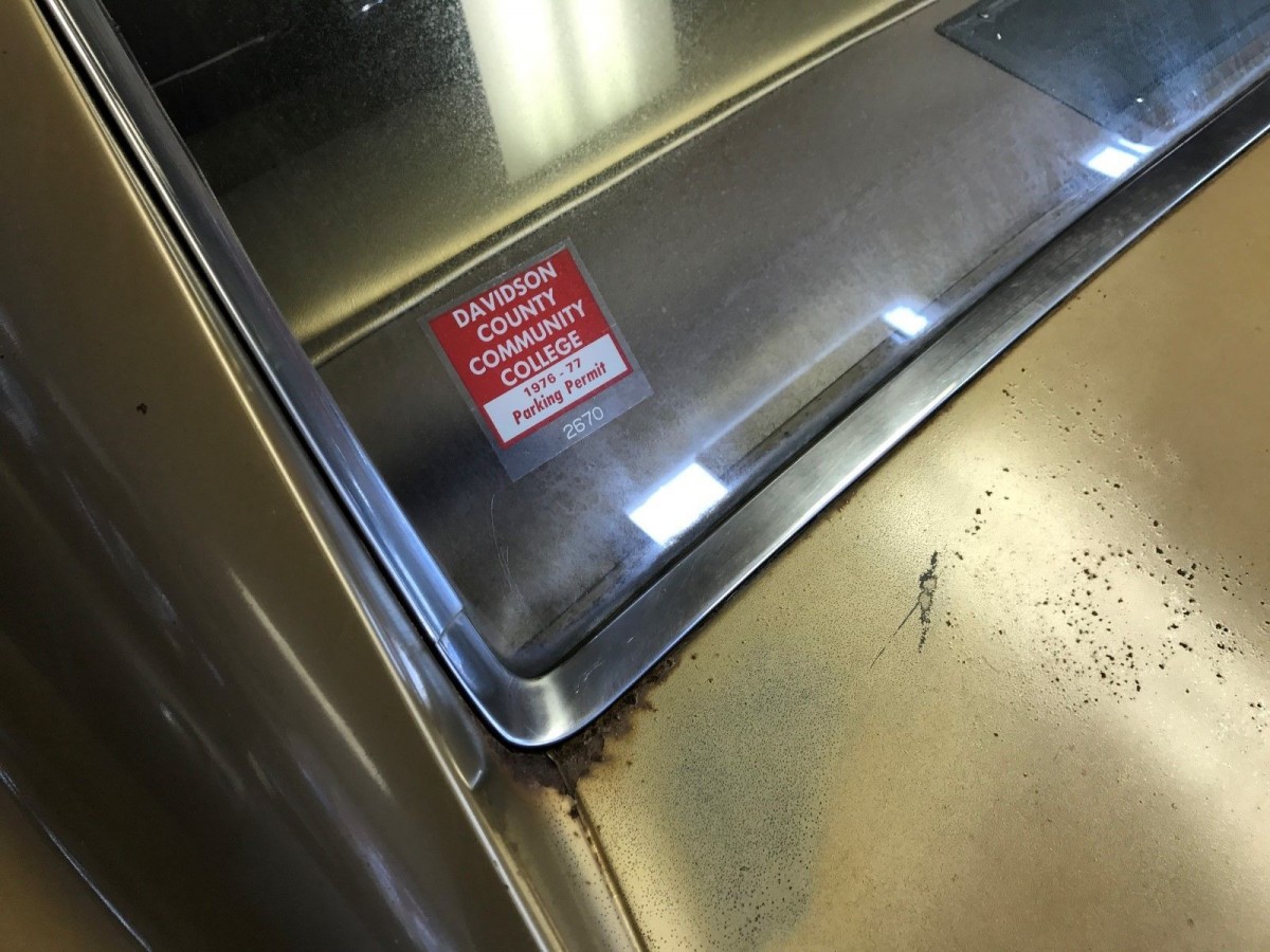 A community college parking sticker on the window. Imagine driving this back and forth from college every day.