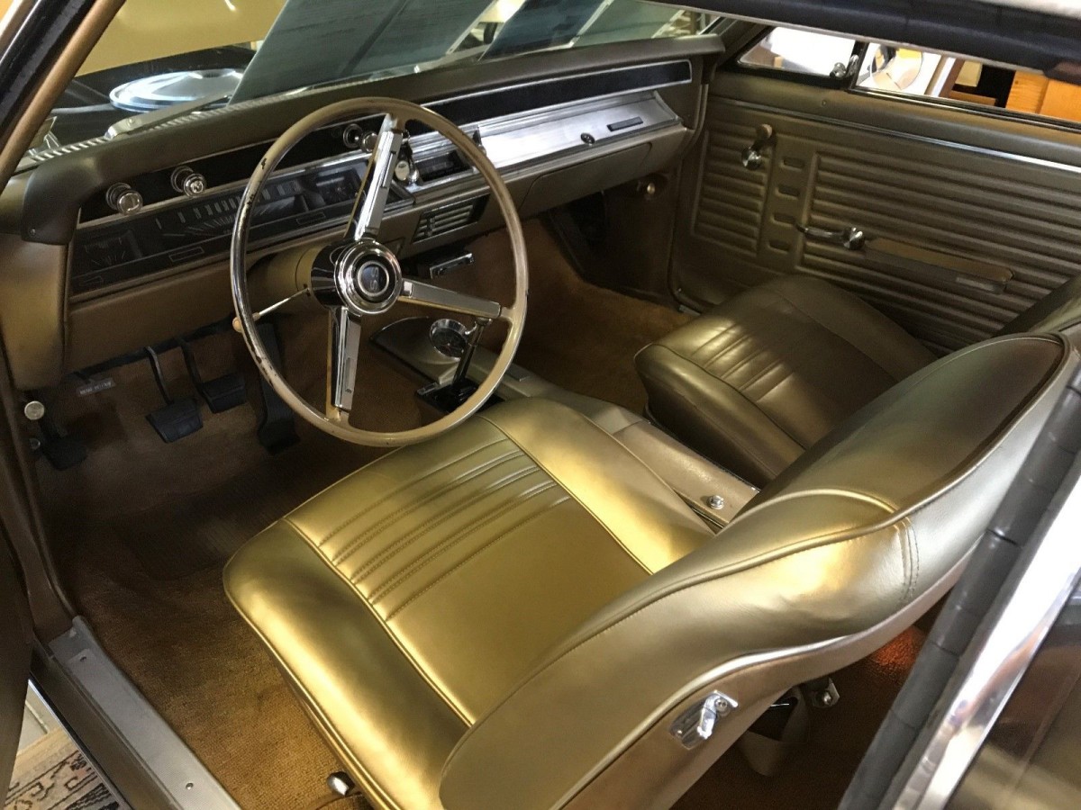 I have a buddy who was my journeyman when I was an apprentice (electrician) who has a 67 Malibu 2 dr. similar to this in his garage for the past 20 some odd years, same color gold, but it isn’t an SS. It has a 327 4 barrel and originally a 3 speed that he swapped for a 4 speed. It originally had black bench seat interior, but now has buckets and a console of of a 66 or 67 El Camino (SS?) The story was that when he was an apprentice, a fellow apprentice with the EC commented on the burden of only being able to carry two people. He said that they agreed to swap seats one night during break at apprenticeship school. He also has two SS hoods and an extra set of doors. The trouble is, the car originally had a vinyl top, which caused the panel between the back window and trunk to rust out, which then rusted out the trunk. No rust anywhere else on the car- (Damn you vinyl tops!!!) He replaced both, but in the process, stripped the car down to nothing but the shell on the frame. IT has sat like that since. He also has a hemi orange 70 Dart Swinger 318 auto and Plum Crazy purple (now in primer) 70 Dodge Challenger R/T with a 383 auto in the same garage. He hasn’t touched any of them in years.His wife has explicit instructions to call me FIRST if and when he keels over. LOL. I tried to work a deal with him to swap a 72 C10 swb stepside that I had restored, (“restomod”), but he wouldn’t bite. I just hope that I get a shot at them before I get too old too!