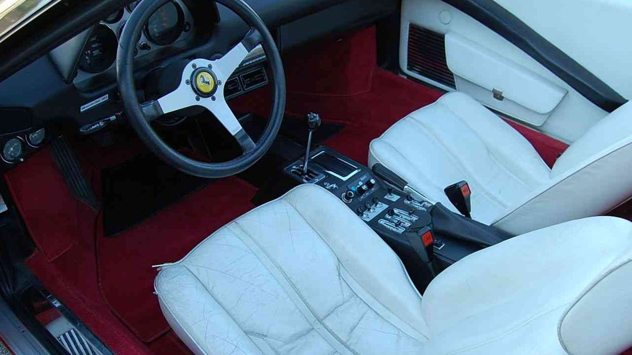 Supposedly, the first owner had a cozy relationship with Enzo Ferrari, giving him the kind of access needed to request a custom white leather interior, and hood louvers, headlight louvers and the body line similarly trimmed in white. While it’s not what I would choose if given the opportunity to have Enzo whip up a Ferrari to my liking, the first owner clearly wanted to set his Ferrari apart from all of the other Magnum P.I. tribute cars. The driver’s seat looks surprisingly tired for a car with under 40,000 original miles, but I suppose that’s a testament to it actually being used.