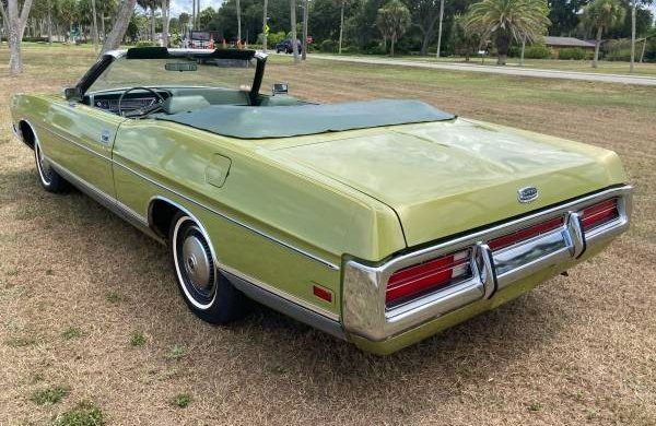 I’m assuming the LTD’s appearance hasn’t changed in the past three years as the seller repurposed the same Florida photos from the 2022 article. It’s been a pampered “Fair Weather Ford” all its life and only driven in the spring and summer and in local parades. The original Bright Green Gold Metallic paint is still shiny and presentable and all of the Ford’s chrome, trim, lenses, and brightwork looks good as well. I’m not spotting any rust or accident damage and the LTD also comes with the original green convertible top boot and the original bag it came in. There are no photos of the LTD’s convertible top included in the ad. When sold three years ago, the top was described as in very good condition and with a glass rear window.
