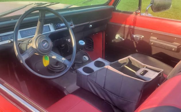 This 1980 International Harvester Scout II represents the last year of production for the International Harvester Scout II. This example is located in Waunakee, Wisconsin and has a reported odometer reading of 75,000 miles. International Harvester built approximately 532,000 Scout models across all series and variants before ending production in October 1980. This Scout II is listed for sale here on Facebook Marketplace. The seller is asking $18,500 and the ad has been up for over 6 months. We appreciate Hans H. for sending us this listing to review. The interior of this Scout II looks pretty stock except for the homemade console. You can readily see the stick shift for the manual transmission and the 4WD gear selector.