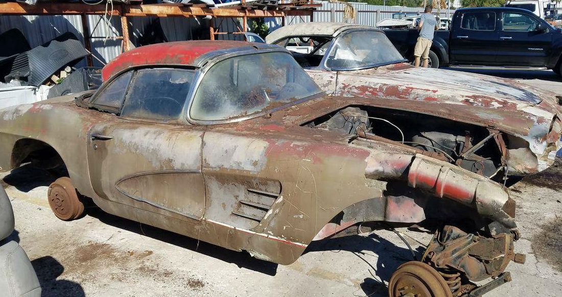 Geez that poor vette realy got blasted. You would need mucho motivation and coin to take it on. Wonder what it looked like when parked?