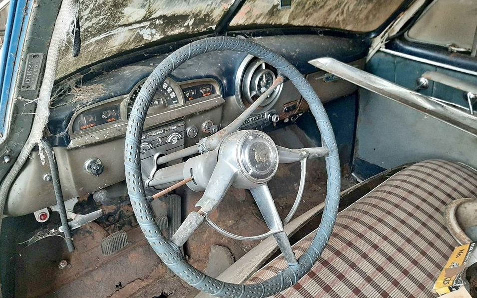 I say “worth it” if it’s structurally sound beyong the floor pans. I don’t mind a 4 door. It’s just as cool to me. I never wanted what everyone else does, anyway. I’d keep that column shift setup, maybe if anything resides under the hood that can be brought back to life, the original engine could be modded to set a few more horses free. Repaint it perhaps a different shade of blue, some cleaned up chrome hubcaps and whitewalls, could be a sweet ride. I hate to see a car like this just rot until it can’t be saved. Might take a bit of cash, but that’s expected.