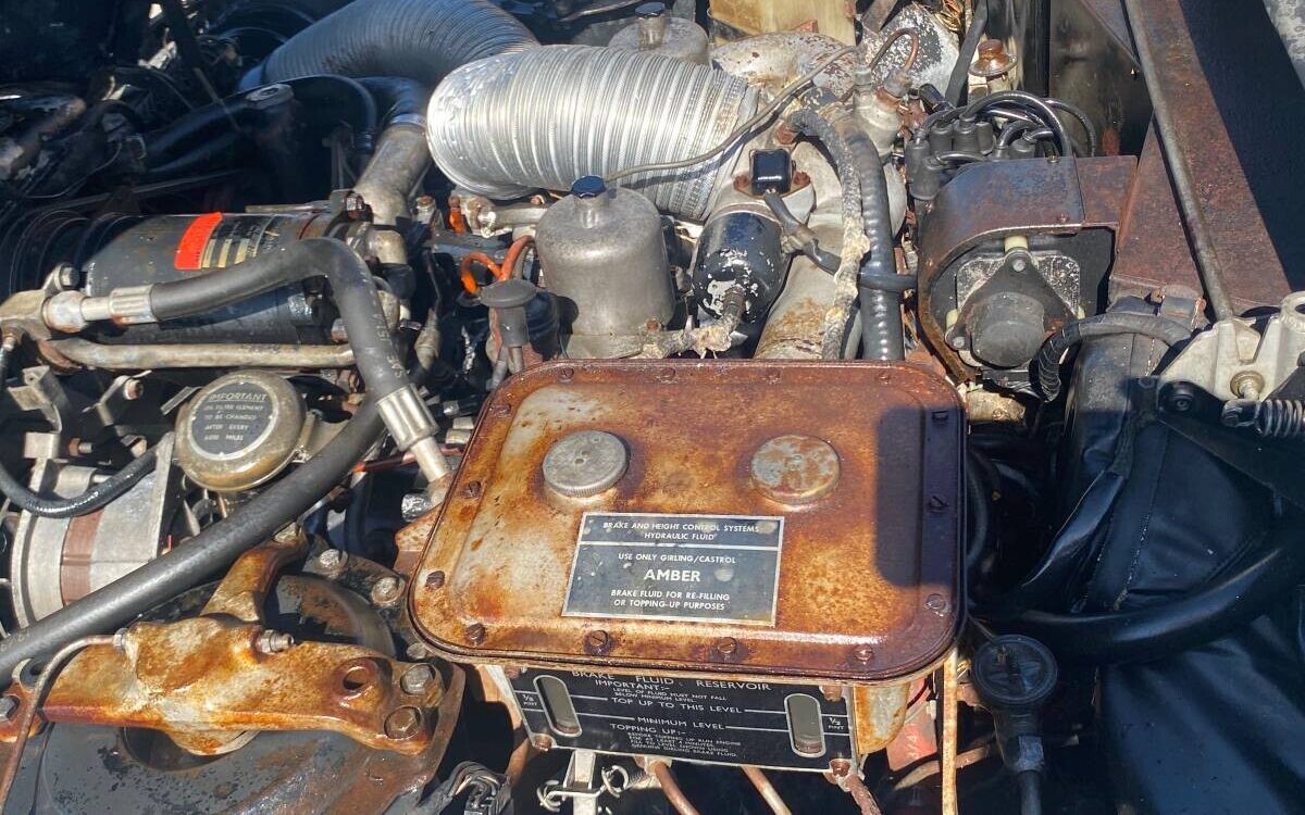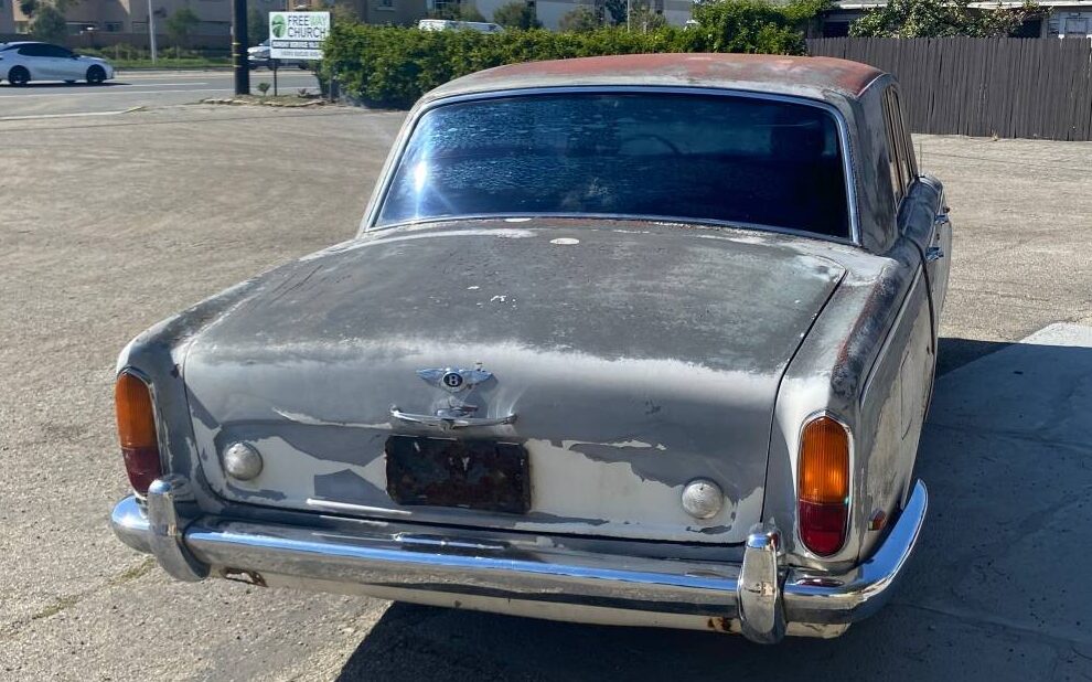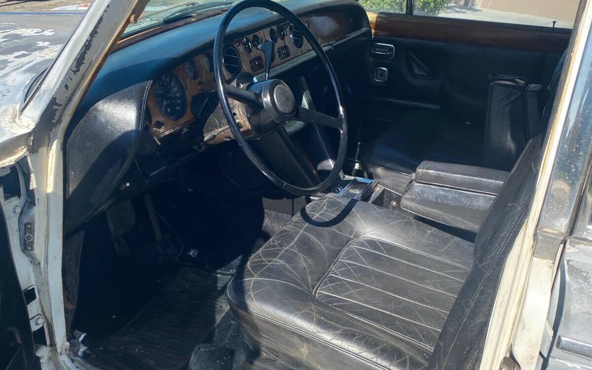 It’s hard to describe the exterior of this Bentley as it looks like it has been scraped and then coated using a roller and house paint. There is some surface rust bleed-through but the body panels show as being straight without any rot having settled in. The bumpers and grille seem pretty fair but the car’s surface condition is just one big detraction from what is, in my estimation, one of Bentley’s finest designs – though, as stated earlier, there’s a lot of visual Rolls-Royce evident. Fortunately, hard-to-source parts like the stainless trim and wheel covers, are all still present.