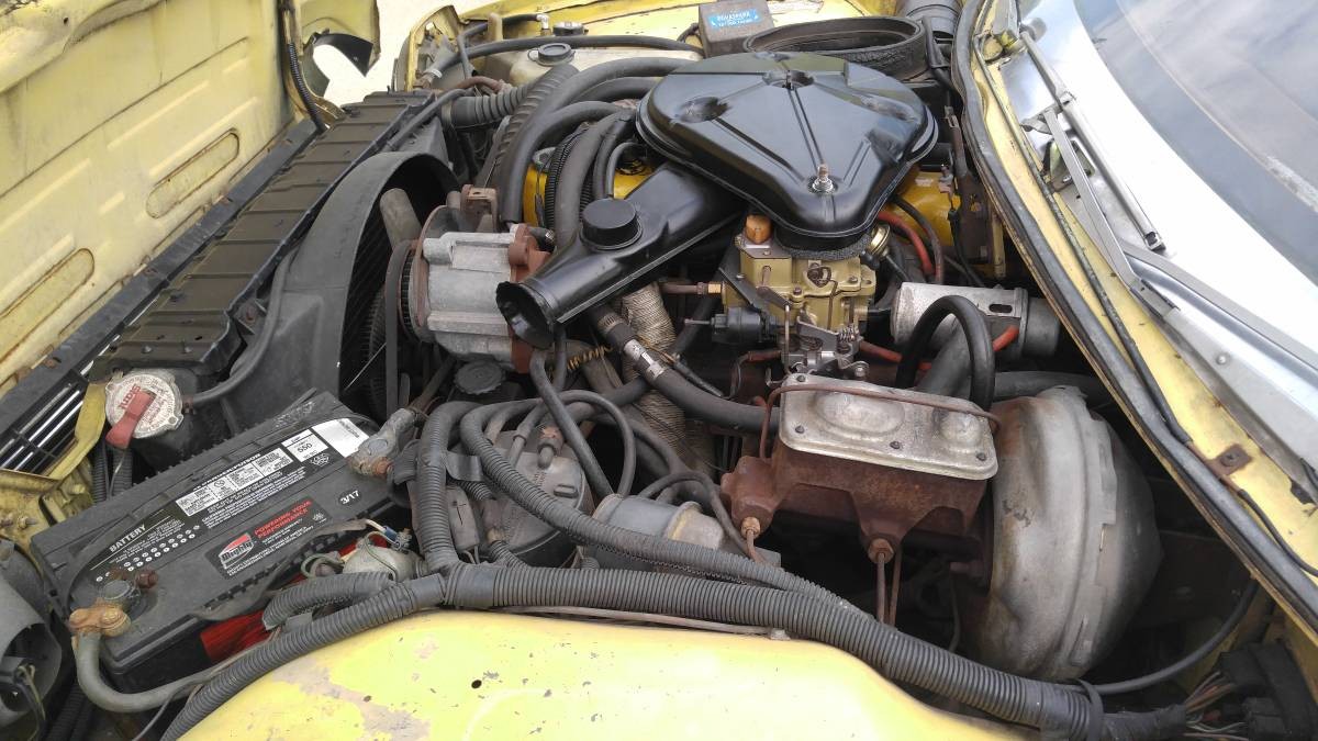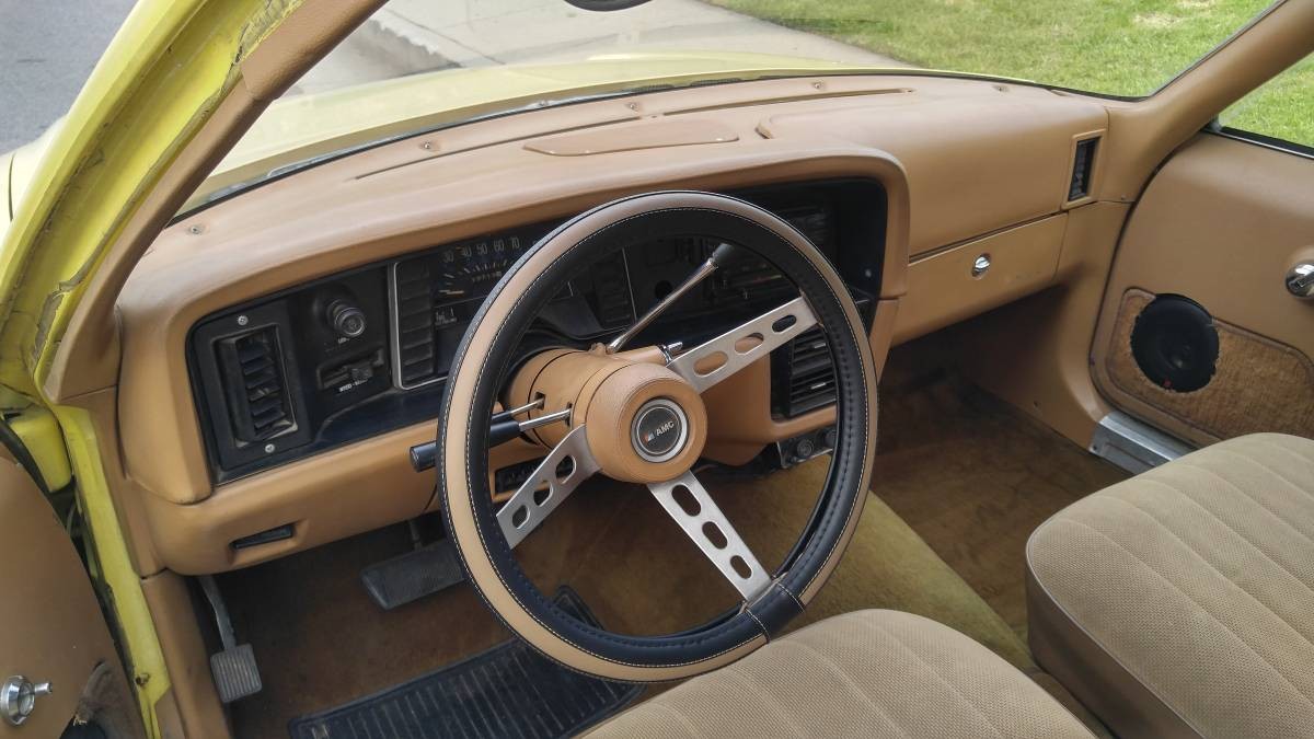 Shoehorned under the hood is a straight 6 auto with air conditioning. Unfortunately the air conditioning system needs work, but a fair amount of work has already been put into this pacer. Rebuilt carb, brakes front and rear, a tune up, and even a new battery. Also the radiator looks to be newer as well. As a whole, the engine bay seems quite clean with the possibility of cleaning up even better with some fine detailing.