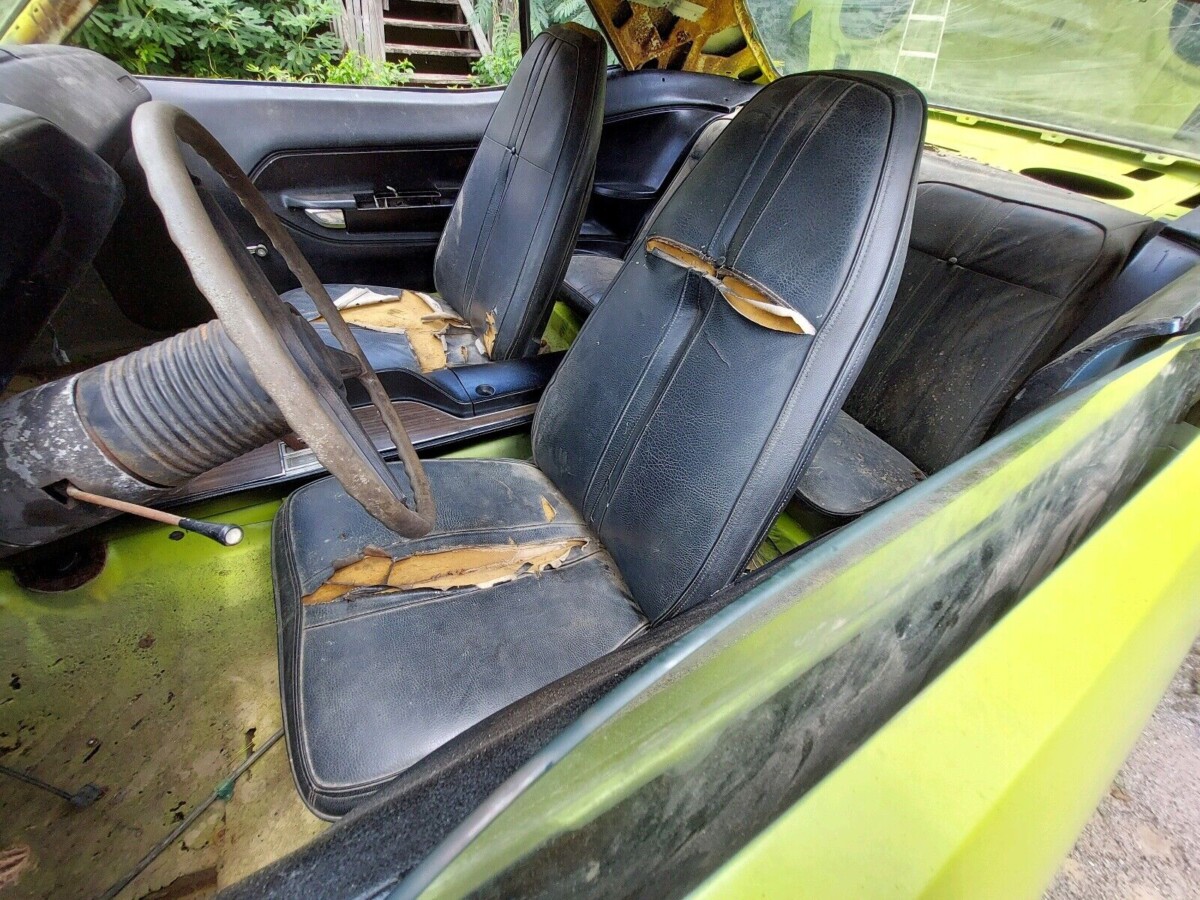Sources indicated that fewer than nine percent of all Barracuda’s in ’71 wore Curious Yellow paint, so if you do the math, then the number could be fewer than 200 ‘Cuda 340s with an automatic, including the seller’s car. We’re told this is a factory 340 Plymouth, but the seller doesn’t go as far as saying the engine is original to the car and the bright orange paint on the motor looks rather fresh. The 340 will turn by hand but the seller hasn’t tried to hook everything up to see if it will run.