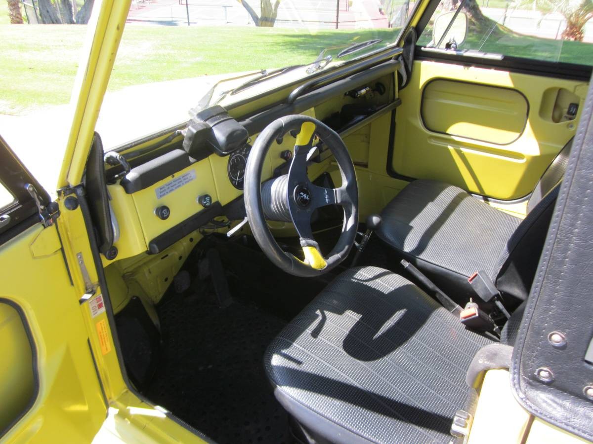 On most modern cars the list of standard features and comfort appointments is so long that it is easy to forget some of them. To forget these items in a Thing is pretty well unforgivable. Once you work your way past the aftermarket steering wheel and the front seats from a later model Volkswagen (the originals of both are also included), there is precious little left in the way of comfort or optional equipment to discuss. That being said, the interior appears to be in good shape. The thing that has always worried me about these is the fact that you can plainly see that there are no intrusion bars in the doors. I never fancy the idea of being t-boned in any car, but the Thing takes that aversion to an extreme.