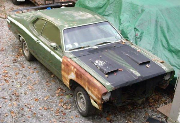 With the hood scoops brought back toward the center of the hood (why would you need scoops that far from the carb anyway) and a repaint these Dusters can begin to approach the hallowed ground of the now astronomically priced Challengers and Chargers… https://upload.wikimedia.org/wikipedia/commons/thumb/5/54/Plymouth_Duster_%28Orange_Julep%29.jpg/800px-Plymouth_Duster_%28Orange_Julep%29.jpg