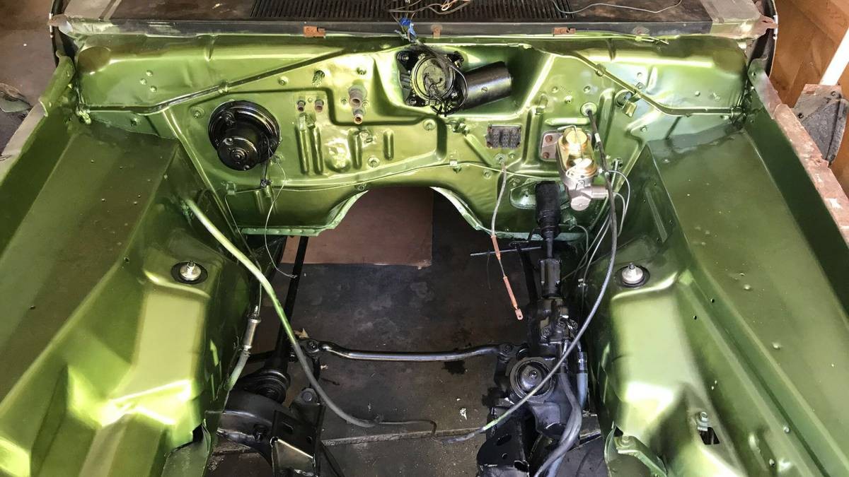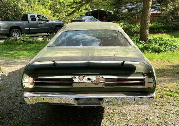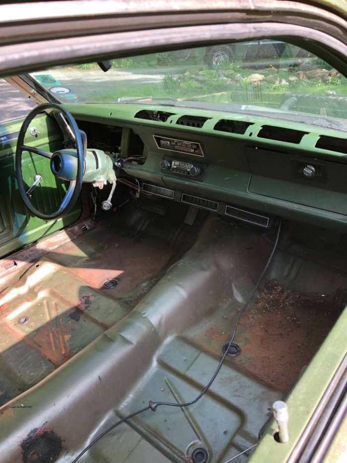 As best as I can tell from the ad, this picture depicts how the car exists today. The seller has the fenders and hood stored as well as “too many parts to list.” That hood with the scoops was Chrysler-Plymouth trying to get as much usage out of the tooling they had created for the Duster 340 high-performance variant as they could. Interestingly enough, I found at least one reference that stated the twin-scoop hood wasn’t available for the 1972 Twister and another that said it was optional (the Twister package was first available in 1971).