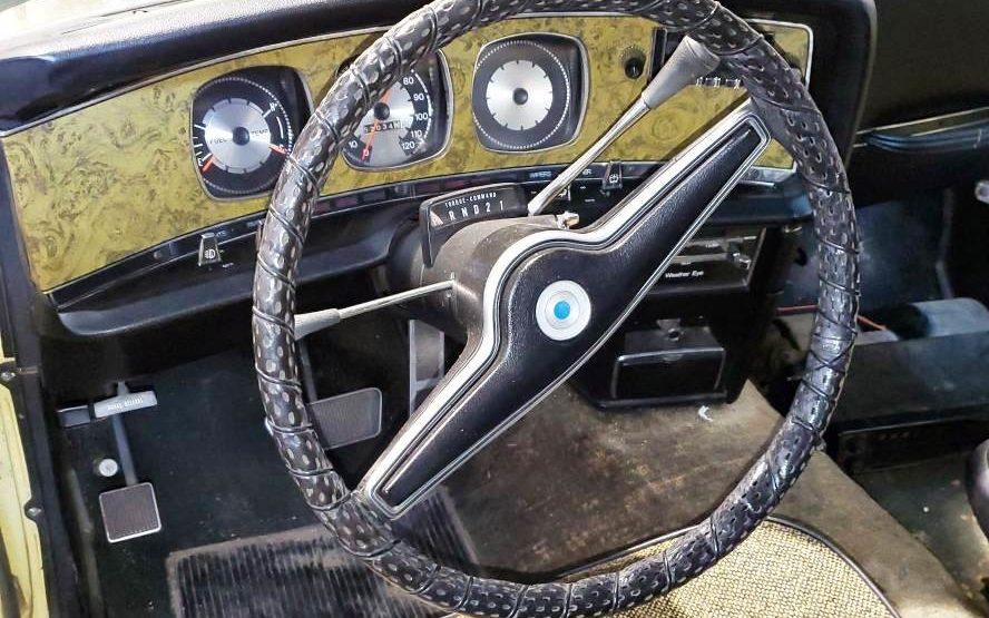 The (original?) 360 cid (5.9L) V8 runs and the seller says it will drive onto a trailer. With power steering, power brakes, and air conditioning, you’ll be riding in style. Though its 53,000 miles purportedly served the original buyer, a “little old lady,” that yellow air cleaner suggests it spent time in someone’s High School parking lot.