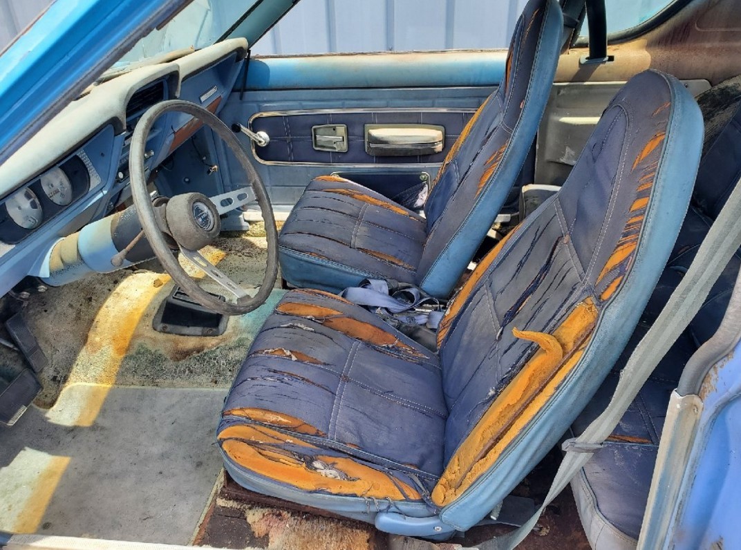 While the upholstery was actually a synthetic material and not real cotton denim, it did look the part. This was probably done because cotton is too flammable. I bet the copper rivets sewn into the seat backs got hot in the summer! These seats are worn through and long past their useful life. Gremlins were produced by AMC from 1970-1978 in the United States. Over 670,000 Gremlins were produced over its life span. It was replaced by the AMC Spirit in 1979 and competed against the Ford Pinto and Chevrolet Vega. The mention of the Gremlin, Pinto and Vega in one sentence probably brings backs some bad memories of less reliability and durability to many consumers. However, the Gremlin was the top rated vehicle by Consumer Reports out of 6 compacts that were rated in 1973.