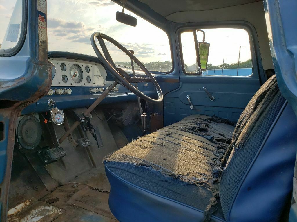 It would ruin the truck more if you put a engine in it from a different vehicle company. There is no such thing as patina it is rust no matter how you look at it. The truck need repainted back to the original paint. Then redo the interior and get rid of that long shifter and put the original one back in its place. the single rear wheels would be better for off roading. wonder what was wrong with the original chassis and drive train that would of been good enough for a build like this. Then I would have to put the steps back in place on the bed since it was a stepside truck.