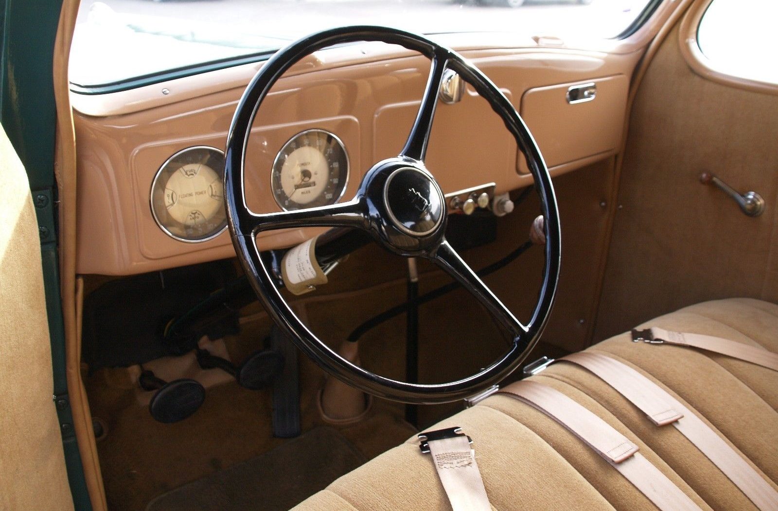 I had a ’37 Plymouth sedan until recently, and when I got it, it had hte original mohair interior. It also should have a woodgrained dashboard, and a radio delete panel if no radio, flanked by an ash tray on one side and a cigarette lighter on the other.